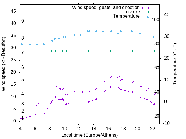 Dawn after 4:00; dusk before 23:00 local time (Europe/Athens).