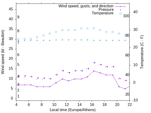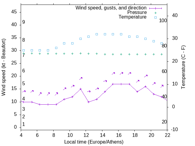 Dawn after 4:00; dusk before 22:00 local time (Europe/Athens).