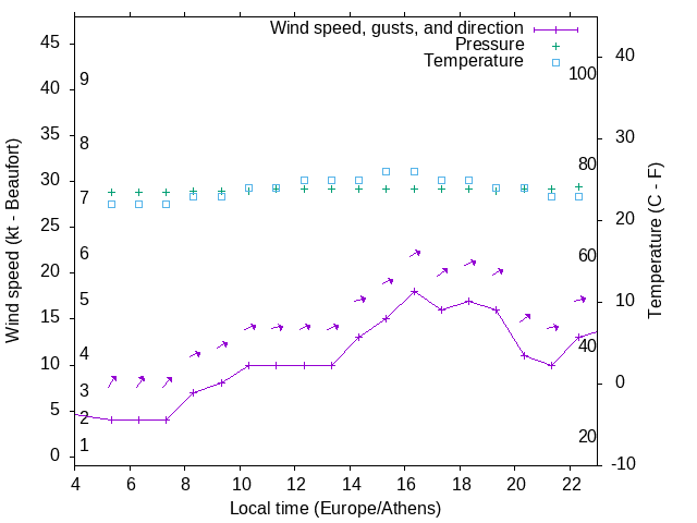 Dawn after 4:00; dusk before 23:00 local time (Europe/Athens).