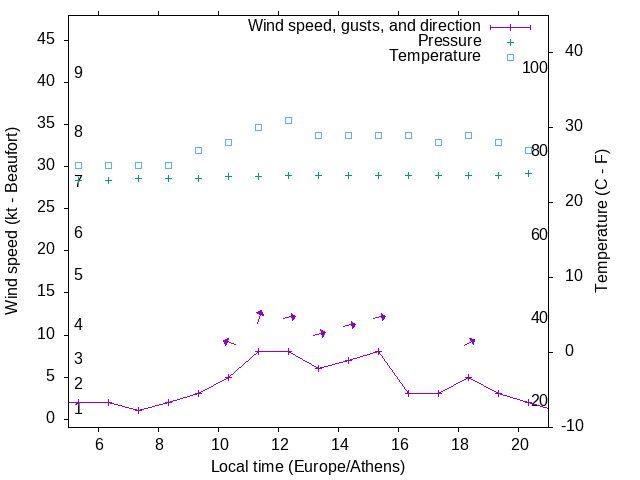Dawn after 5:00; dusk before 21:00 local time (Europe/Athens).