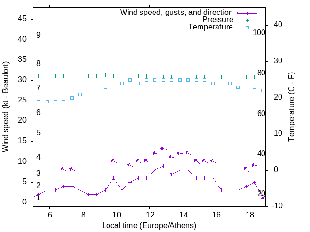 Dawn after 5:00; dusk before 19:00 local time (Europe/Athens).
