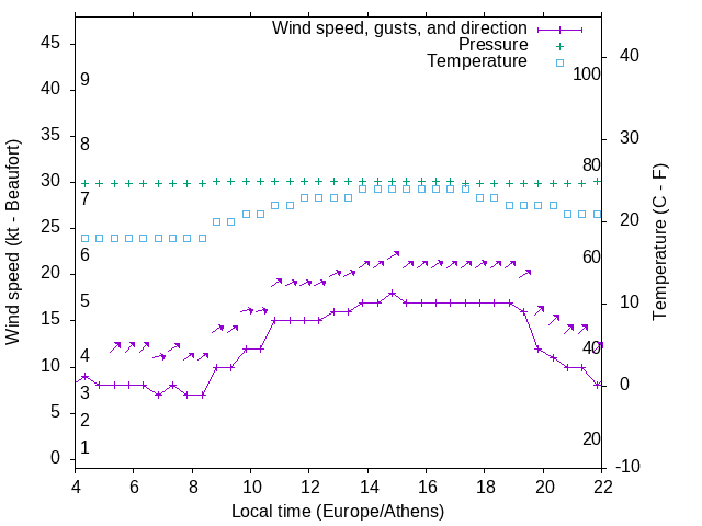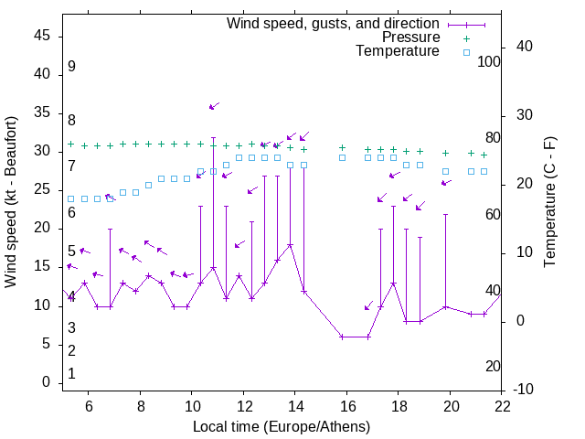 Dawn after 5:00; dusk before 22:00 local time (Europe/Athens).