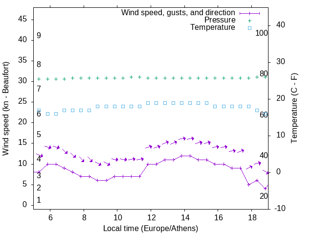 Dawn after 5:00; dusk before 19:00 local time (Europe/Athens).