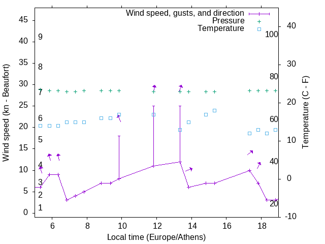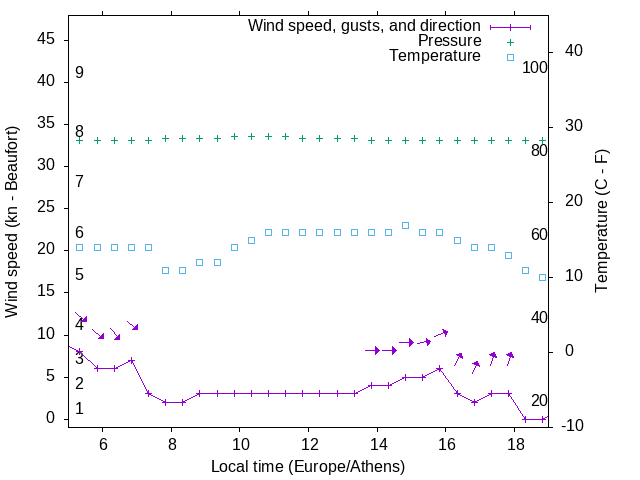 Dawn after 5:00; dusk before 19:00 local time (Europe/Athens).