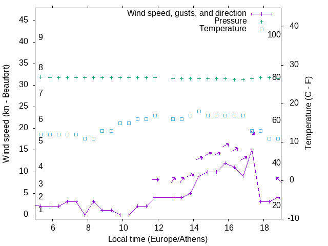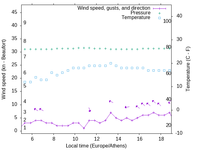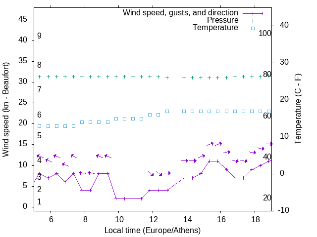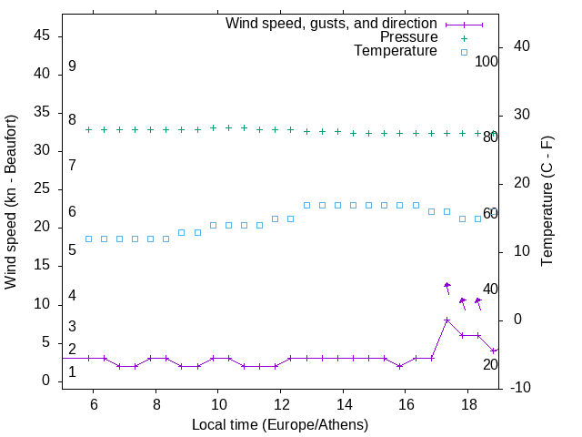 Dawn after 5:00; dusk before 19:00 local time (Europe/Athens).