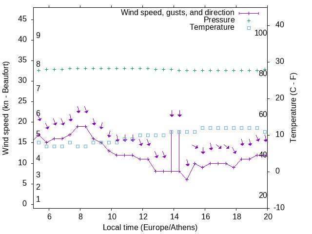Dawn after 5:00; dusk before 20:00 local time (Europe/Athens).