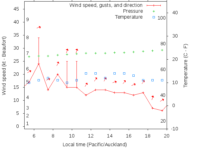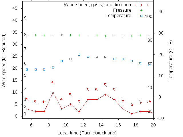 Dawn after 5:00; dusk before 20:00 local time (Pacific/Auckland).