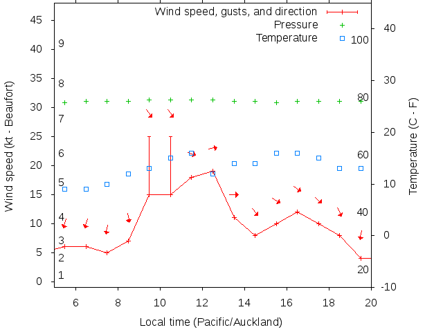 Dawn after 5:00; dusk before 20:00 local time (Pacific/Auckland).