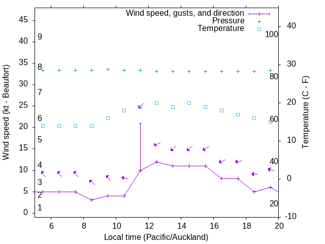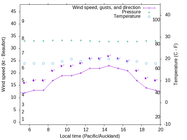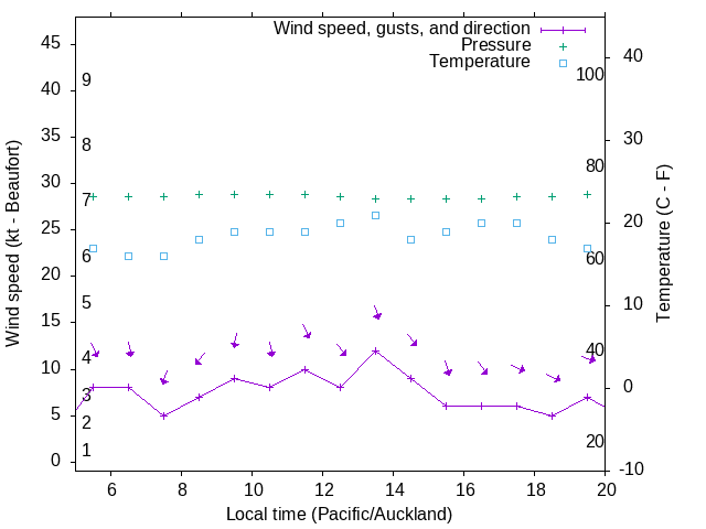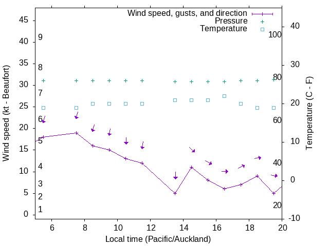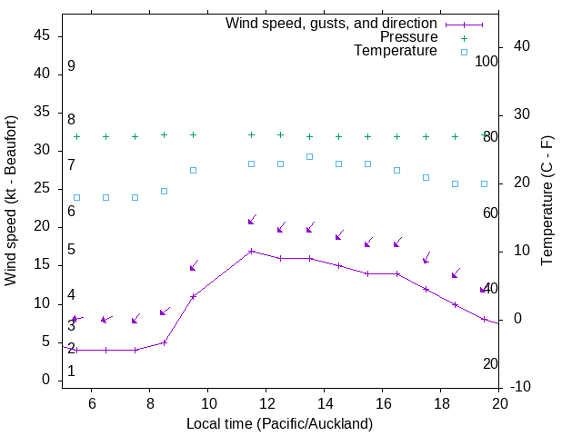 Dawn after 5:00; dusk before 20:00 local time (Pacific/Auckland).