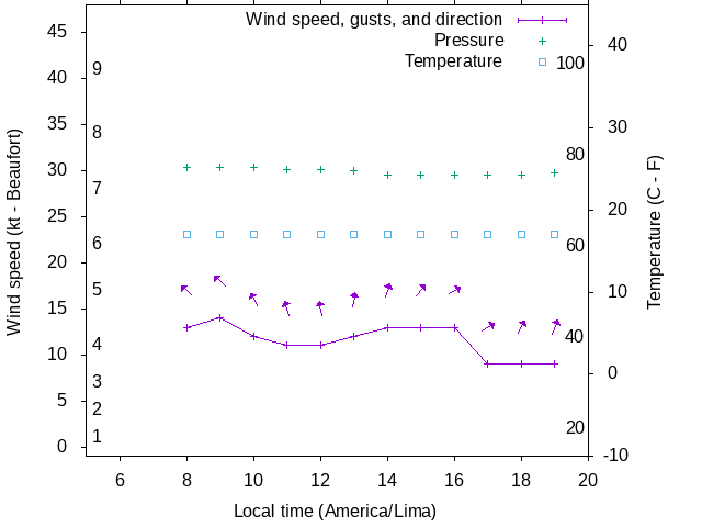 Dawn after 5:00; dusk before 20:00 local time (America/Lima).