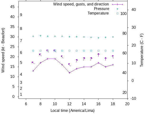 Dawn after 5:00; dusk before 20:00 local time (America/Lima).