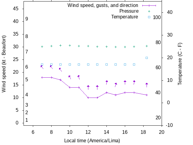 Dawn after 5:00; dusk before 20:00 local time (America/Lima).