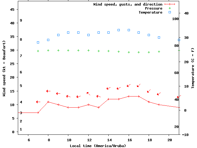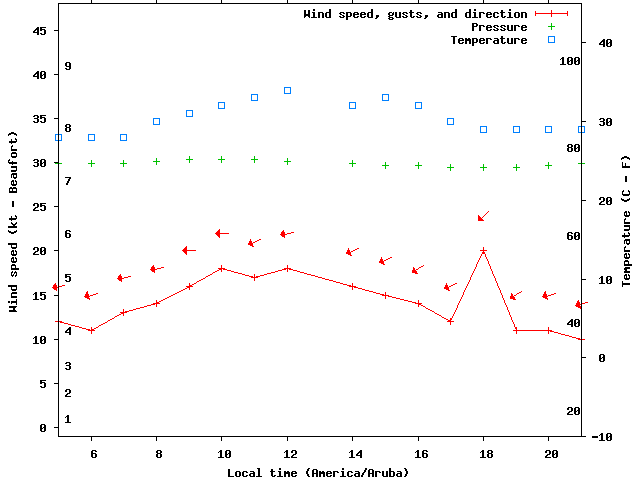 Dawn after 5:00; dusk before 21:00 local time (America/Aruba).