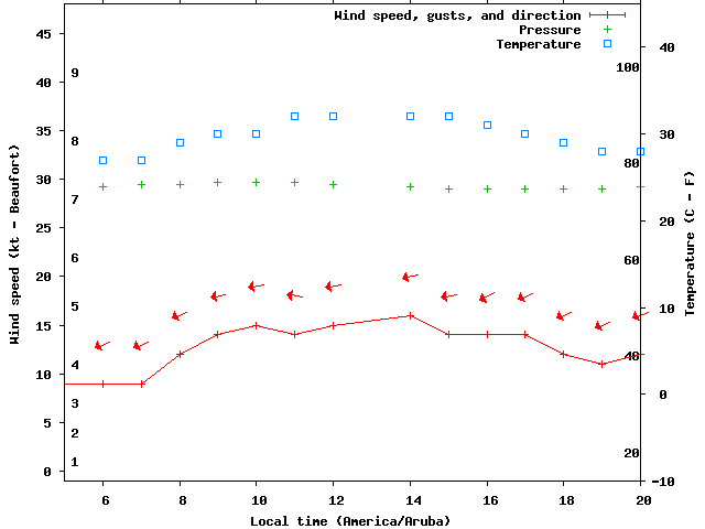 Dawn after 5:00; dusk before 20:00 local time (America/Aruba).