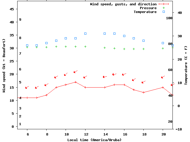 Dawn after 5:00; dusk before 21:00 local time (America/Aruba).