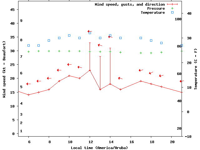 Dawn after 5:00; dusk before 21:00 local time (America/Aruba).