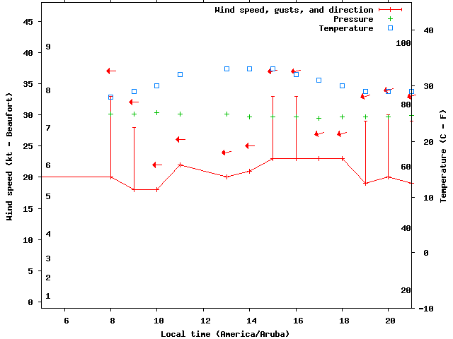 Dawn after 5:00; dusk before 21:00 local time (America/Aruba).