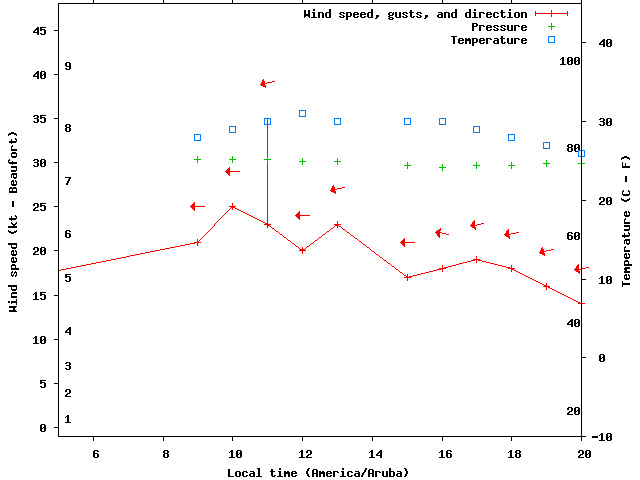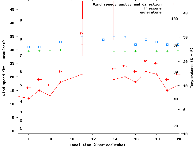 Dawn after 5:00; dusk before 20:00 local time (America/Aruba).