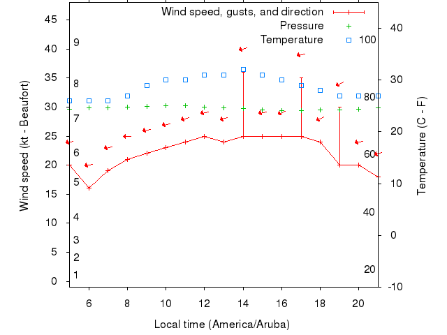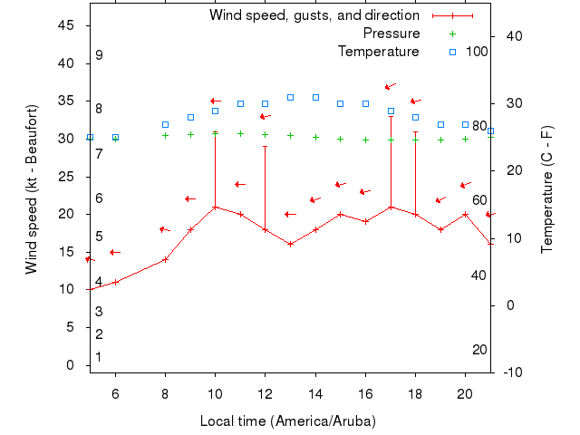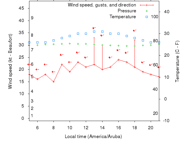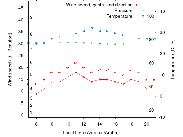 Dawn after 5:00; dusk before 21:00 local time (America/Aruba).