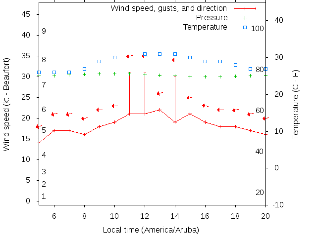 Dawn after 5:00; dusk before 20:00 local time (America/Aruba).