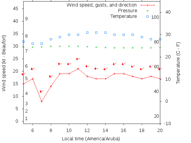 Dawn after 5:00; dusk before 20:00 local time (America/Aruba).