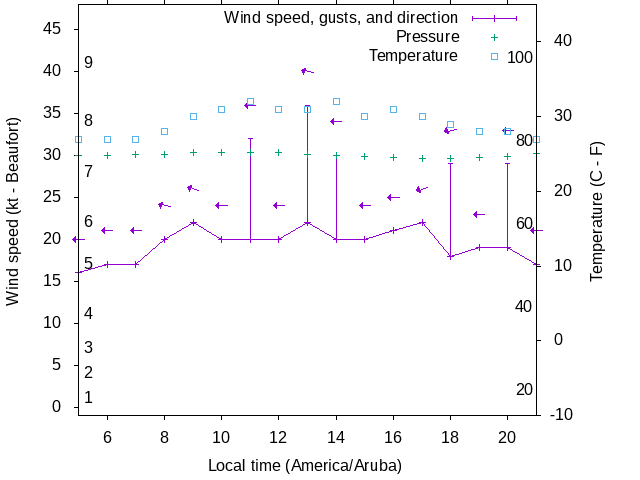 Dawn after 5:00; dusk before 21:00 local time (America/Aruba).