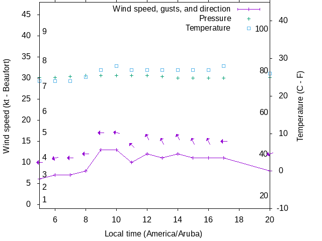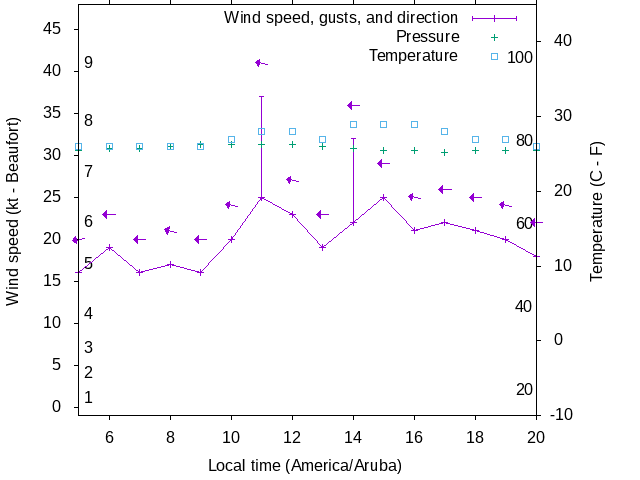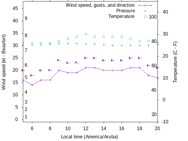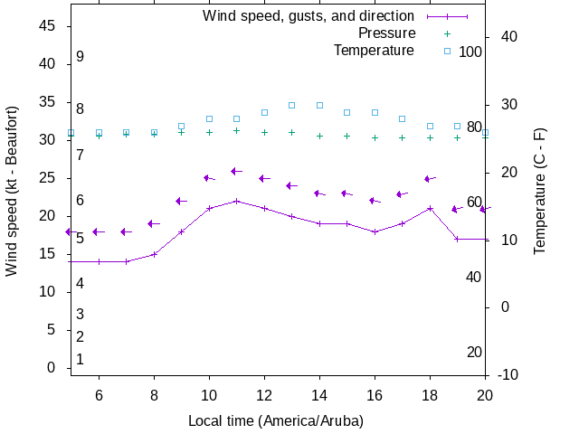 Dawn after 5:00; dusk before 20:00 local time (America/Aruba).