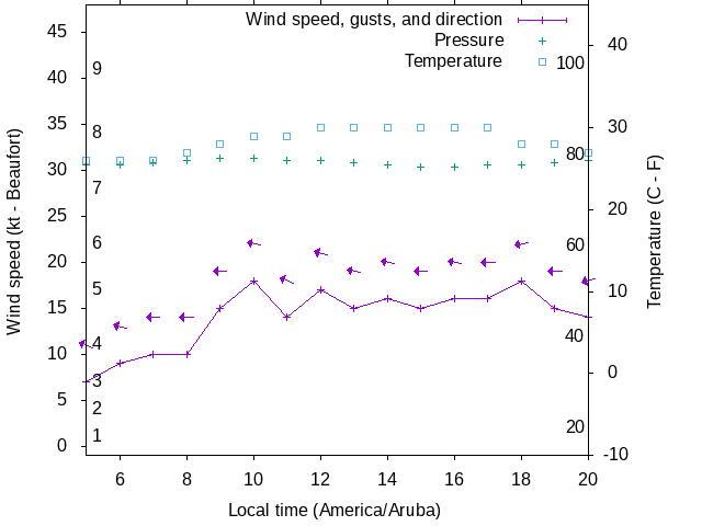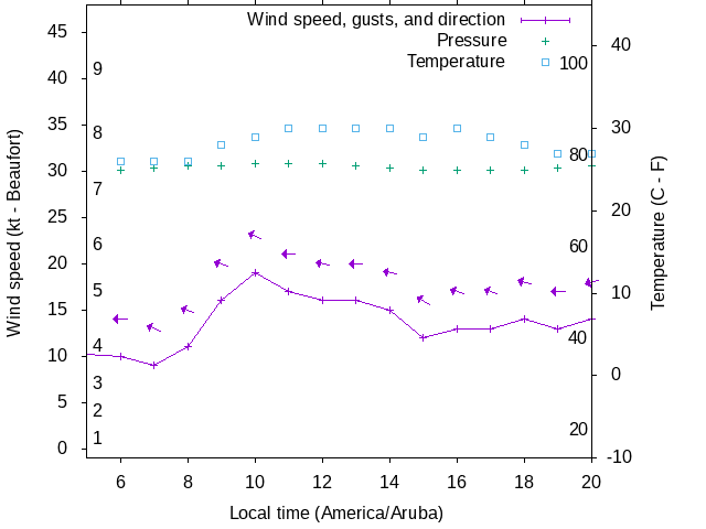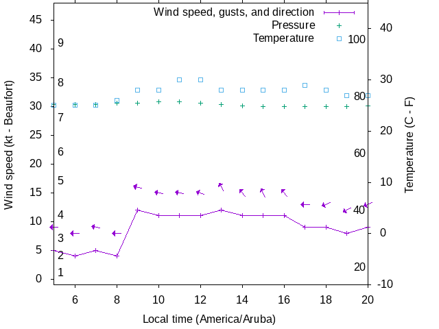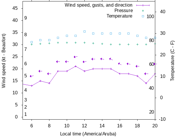 Dawn after 5:00; dusk before 20:00 local time (America/Aruba).