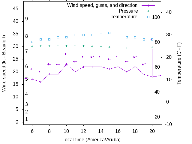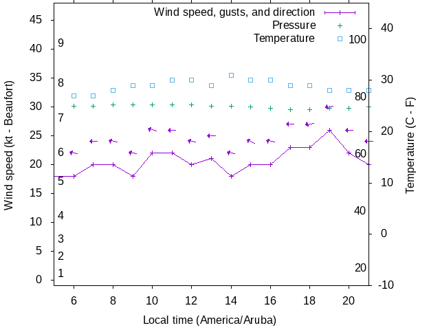 Dawn after 5:00; dusk before 21:00 local time (America/Aruba).