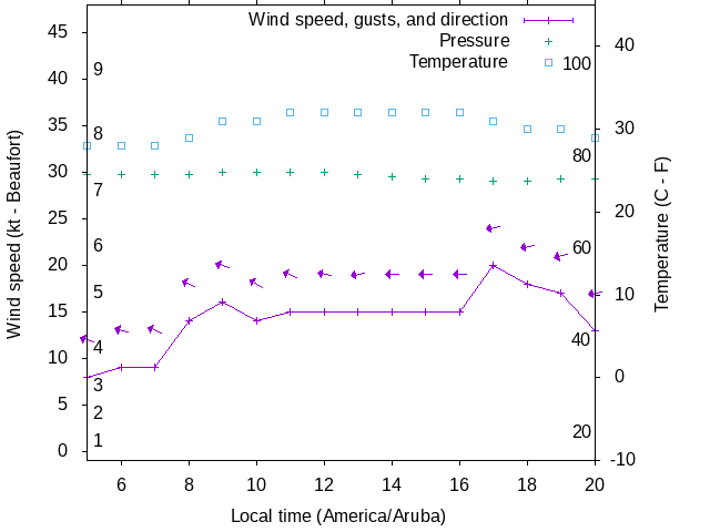 Dawn after 5:00; dusk before 20:00 local time (America/Aruba).