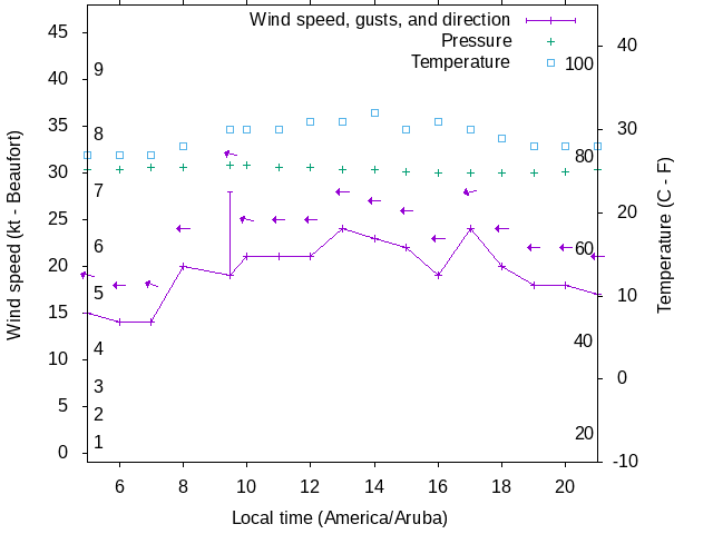 Dawn after 5:00; dusk before 21:00 local time (America/Aruba).