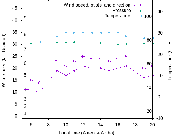Dawn after 5:00; dusk before 20:00 local time (America/Aruba).