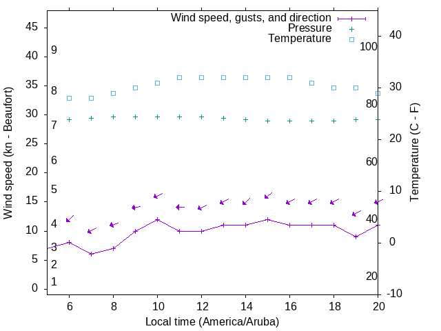 Dawn after 5:00; dusk before 20:00 local time (America/Aruba).