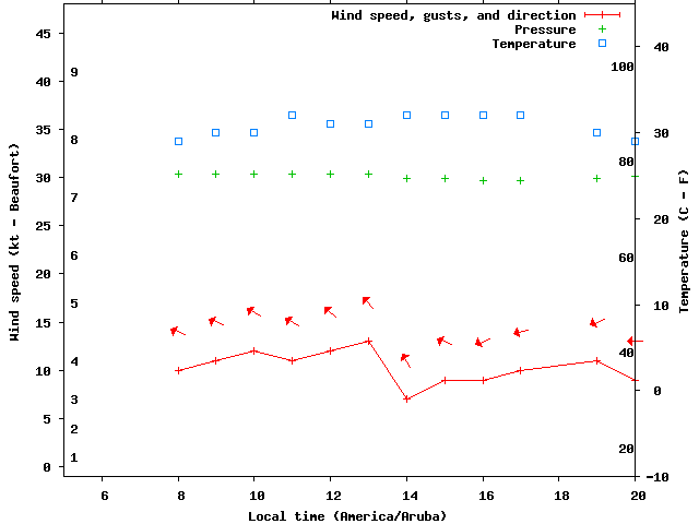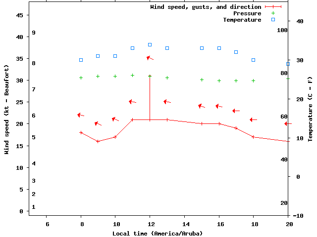 Dawn after 5:00; dusk before 20:00 local time (America/Aruba).