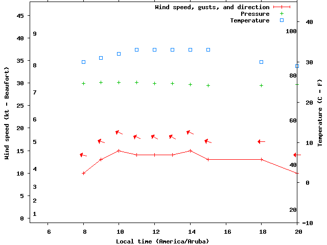 Dawn after 5:00; dusk before 20:00 local time (America/Aruba).