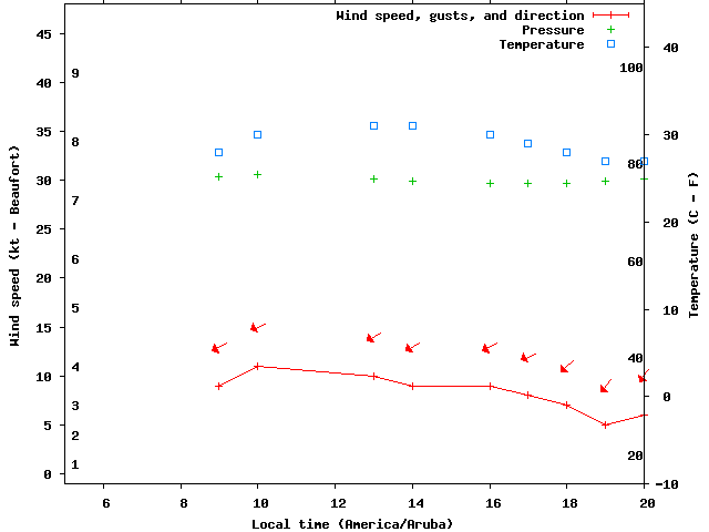 Dawn after 5:00; dusk before 20:00 local time (America/Aruba).