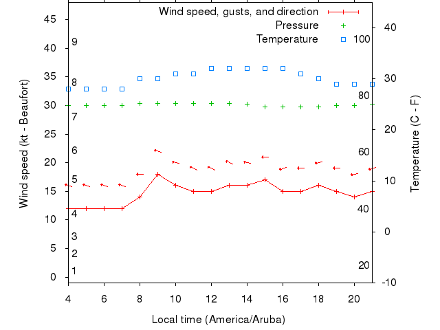 Dawn after 4:00; dusk before 21:00 local time (America/Aruba).