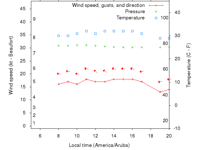 Dawn after 5:00; dusk before 20:00 local time (America/Aruba).