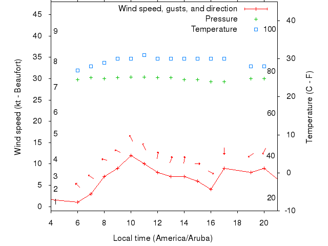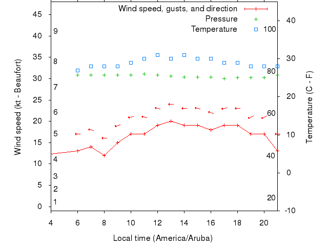 Dawn after 4:00; dusk before 21:00 local time (America/Aruba).
