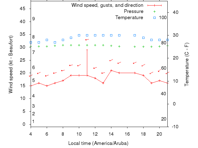 Dawn after 4:00; dusk before 21:00 local time (America/Aruba).