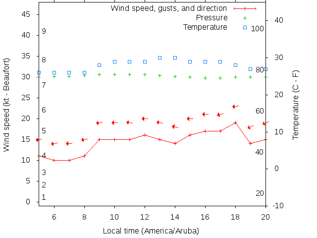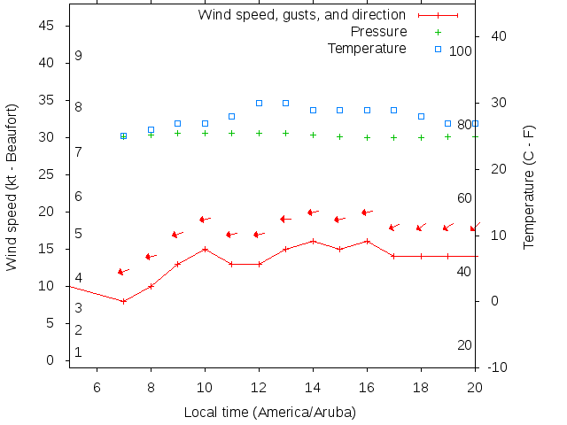 Dawn after 5:00; dusk before 20:00 local time (America/Aruba).