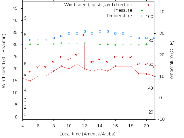 Dawn after 4:00; dusk before 21:00 local time (America/Aruba).