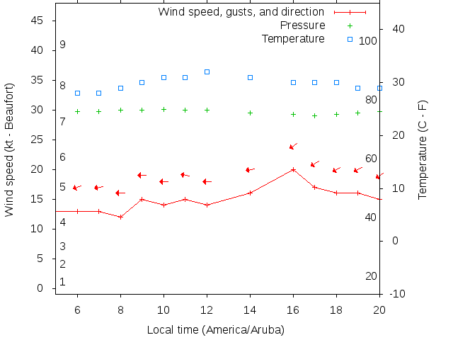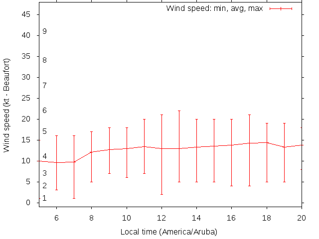 Dawn after 5:00; dusk before 20:00 local time (America/Aruba).