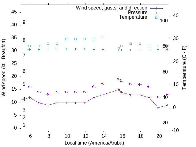 Dawn after 5:00; dusk before 21:00 local time (America/Aruba).
