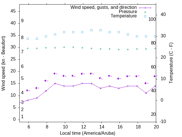 Dawn after 5:00; dusk before 20:00 local time (America/Aruba).