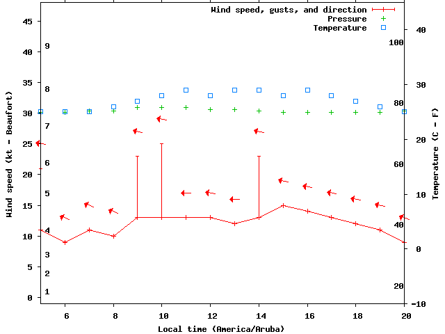 Dawn after 5:00; dusk before 20:00 local time (America/Aruba).