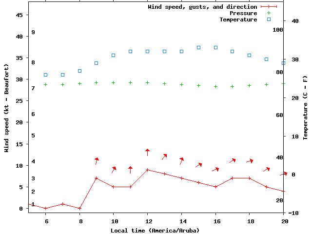 Dawn after 5:00; dusk before 20:00 local time (America/Aruba).