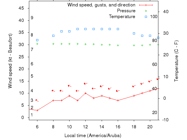 Dawn after 5:00; dusk before 21:00 local time (America/Aruba).