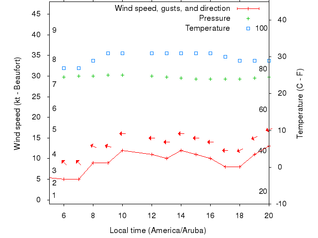 Dawn after 5:00; dusk before 20:00 local time (America/Aruba).
