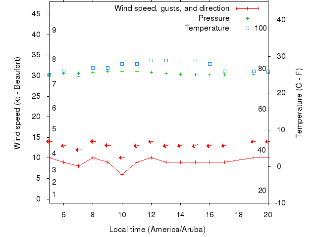 Dawn after 5:00; dusk before 20:00 local time (America/Aruba).
